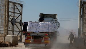গত ১০ অক্টোবর হামাস ও ইসরাইলের মধ্যে যুদ্ধবিরতি কার্যকর হওয়ার পর প্রতিদিন শত শত ট্রাক ত্রাণ নিয়ে গাজা উপত্যকায় প্রবেশ করছিল। ছবি: সংগৃহীত