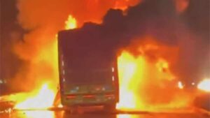 ভারতের অন্ধ্রপ্রদেশের কুর্নুল জেলায় ভয়াবহ সড়ক দুর্ঘটনায় অন্তত ১২ জনের মৃত্যু হয়েছে। স্থানীয় সময় শুক্রবার (২৪ অক্টোবর) ভোর সাড়ে তিনটার দিকে কুর্নুলের চিন্নাটেকুর গ্রামের কাছে হায়দরাবাদ থেকে বেঙ্গালুরুগামী একটি চলন্ত যাত্রীবাহী বাস বাইকের সঙ্গে সংঘর্ষে আগুন ধরে যায়।