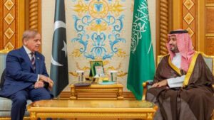 ২৭ অক্টোবর, পাকিস্তানের প্রধানমন্ত্রী শাহবাজ শরিফ আল ইয়ামামা প্রাসাদে সৌদি ক্রাউন প্রিন্স ও প্রধানমন্ত্রী মোহাম্মদ বিন সালমানের সঙ্গে সাক্ষাৎ করেন।