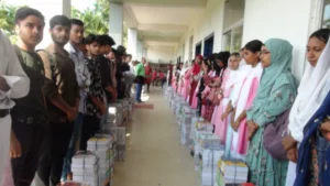 প্রধান অতিথি জহিরুল ইসলাম মোল্লা বলেন, শিক্ষার আলো সব জায়গায় ছড়িয়ে দেওয়ার লক্ষ্যে কলেজ প্রতিষ্ঠার পর থেকে আমরা প্রতি বছরই কলেজের ছাত্র-ছাত্রীদের বিনামূল্যে বই, পোষাক ও যাতায়াতের জন্য বাইসাইকেল প্রদান করি।