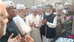 এসময় মন্ত্রিপরিষদ সচিব শেখ আব্দুর রশিদ, ধর্মসচিব মো. কামাল উদ্দীন ও মসজিদ পরিচালনা কমিটির সভাপতি মনিরুজ্জামান উপস্থিত ছিলেন।