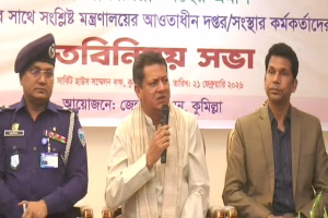 কুমিল্লা সার্কিট হাউসে মতবিনিময় সভায় প্রধান অতিথির বক্তব্য রাখেন গৃহায়ণ ও গণপূর্তমন্ত্রী জাকারিয়া তাহের (সুমন)।