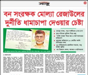 গত ৫ আগস্ট স্বৈরাচারী সরকারের পতনের পর মোল্যা রেজাউল করিম সুকৌশলে বিভিন্ন তদবিরের মাধ্যমে বন সংরক্ষক চট্টগ্রাম অঞ্চলের পদটি বাগিয়ে নেন। গত বছরের আগস্ট মাসে তার বদলি হলেও ৩ সেপ্টেম্বর ২০২৪ সালে চট্টগ্রাম অঞ্চলের সিএফ হিসেবে দায়িত্বভার গ্রহণ করেন। এরপর থেকে পর্যায়ক্রমে বনবিভাগে অসন্তোষের সৃষ্টি হয়। প্রত্যেক ডিভিশনে মত বিনিময় সভার নামে ঘুষ আদায়ের পদ্ধতিগত সভার আয়োজন করেন। মোল্যা সাহেব এর সভাপতিত্বে এই সভাগুলো সম্পন্ন হয়। সভায় তিনি মাননীয় উপদেষ্টা, পরিবেশ, বন ও জলবায়ু পরিবর্তন মন্ত্রণালয় এর বন বিভাগের একমাত্র শুভাকাংক্ষী দাবী করেন এবং প্রতিদিন উপদেষ্টা ৩/৪ বার মোবাইলে যোগাযোগ করেন বলে সকলকে অবগত করেন, যাতে সকলেই মোল্লাকে ভয় পান। চট্টগ্রাম সার্কেলের সিএফ হতে ৩ কোটি টাকা সম্মানী প্রদান করা হয়েছে মর্মে সে প্রত্যেক ডিভিশনের ডিএফও সাহেবদেরকে টাকা প্রদান করতে বাধ্য করেন। প্রাথমিকভাবে প্রত্যেকে ডিভিশন থেকে টাকা আদায়ের দায়িত্ব পালন করেন আব্দুর রহমান, ডিএফও, আব্দুল্লাহ আল মামুন ডিএফও এবং জয়নাল আবেদীন, সহকারী বন সংরক্ষক, আবদুল হামিদ, ফরেস্টার, মামুন মিয়াঁ, ফরেস্টার। প্রাথমিকভাবে ১ কোটি টাকা মোল্যাকে প্রদান করা হয়।