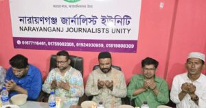 নারায়ণগঞ্জ জার্নালিস্ট ইউনিটি’র উদ্যোগে পবিত্র মাহে রমজান উপলক্ষে দোয়া ও ইফতার মাহফিল অনুষ্ঠিত হয়েছে।