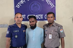 ঢাকা রেলওয়ে পুলিশের হাতে গ্রেপ্তার মো. আতাউর রহমান ওরফে মেরাজুল। ঢাকা, ১২ এপ্রিল ২০২৬